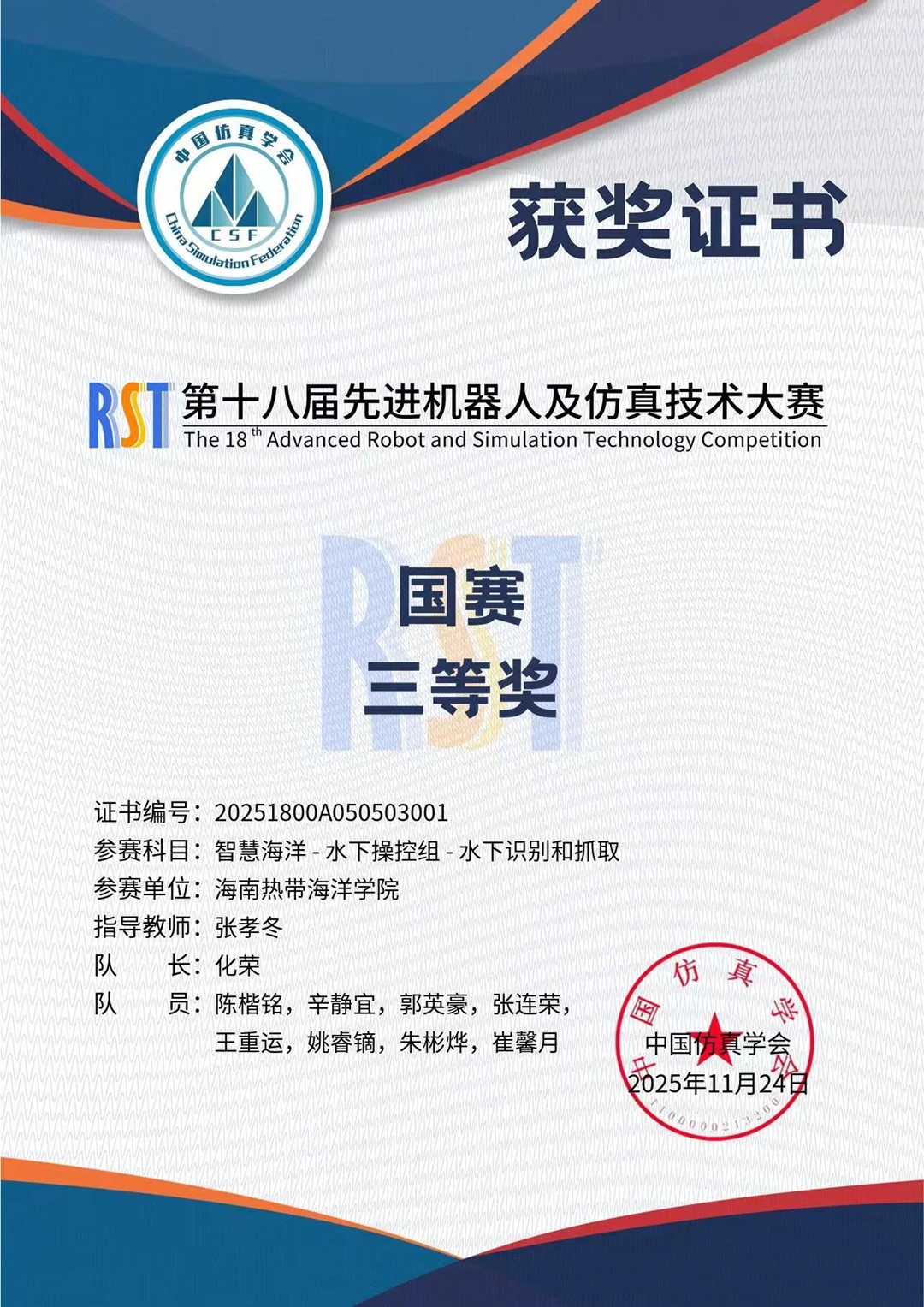 - 2025/11/18 【喜报】yl7703永利集团在全国第十八届先进机器人及仿真技术大赛中...