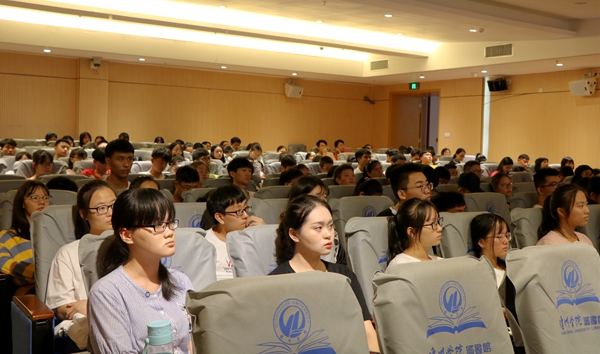海滨教授旁征博引,告诉同学们正身处在一个伟大的时代。他最后引用总书记对青年的寄语,殷切希望同学们努力完成学业,提升自身综合素质,认清方向,明确自己的人生观、世界观、价值观,在伟大的时代大有作为。